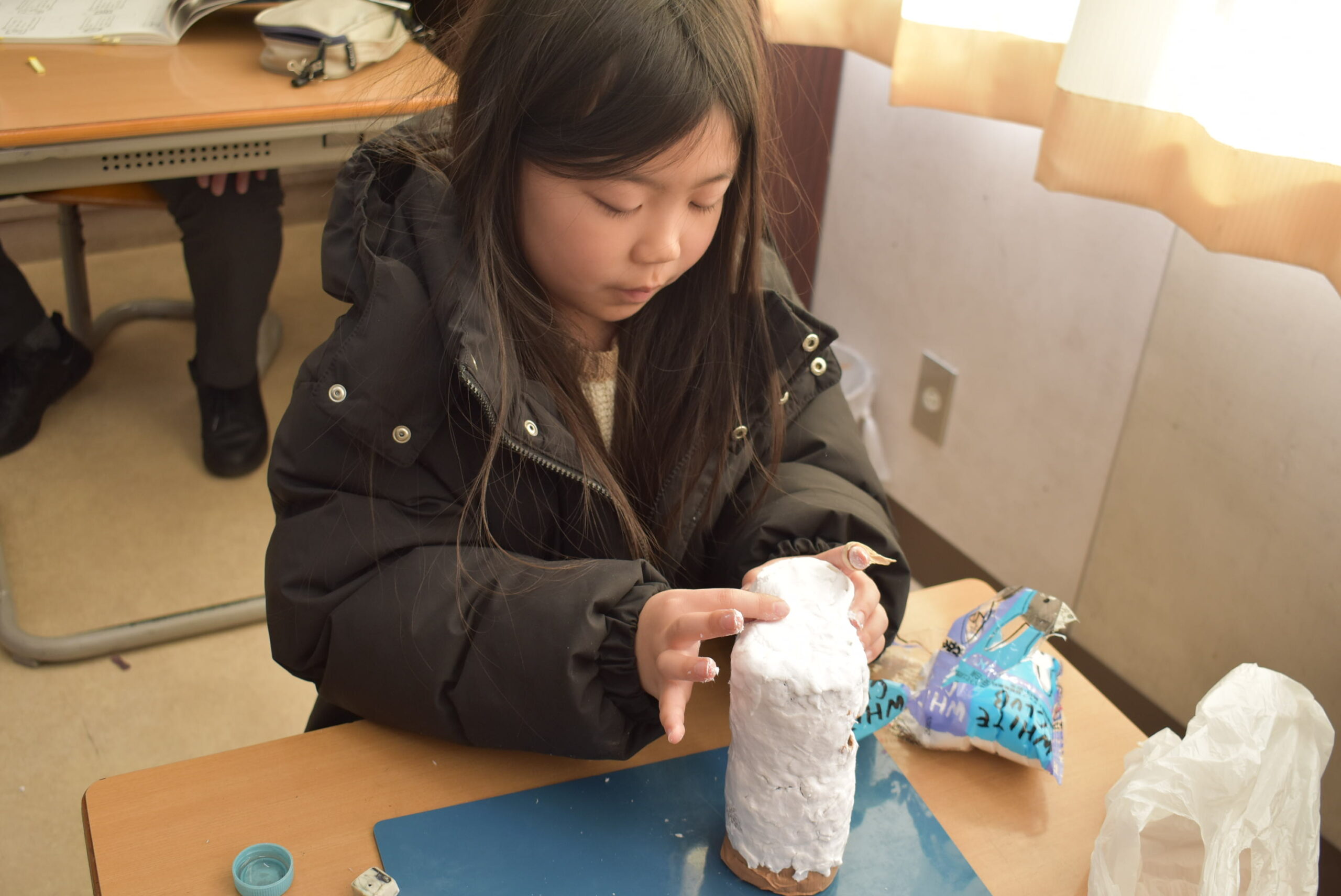 3年生の図工「空き容器のへんしん」が進んでいました。