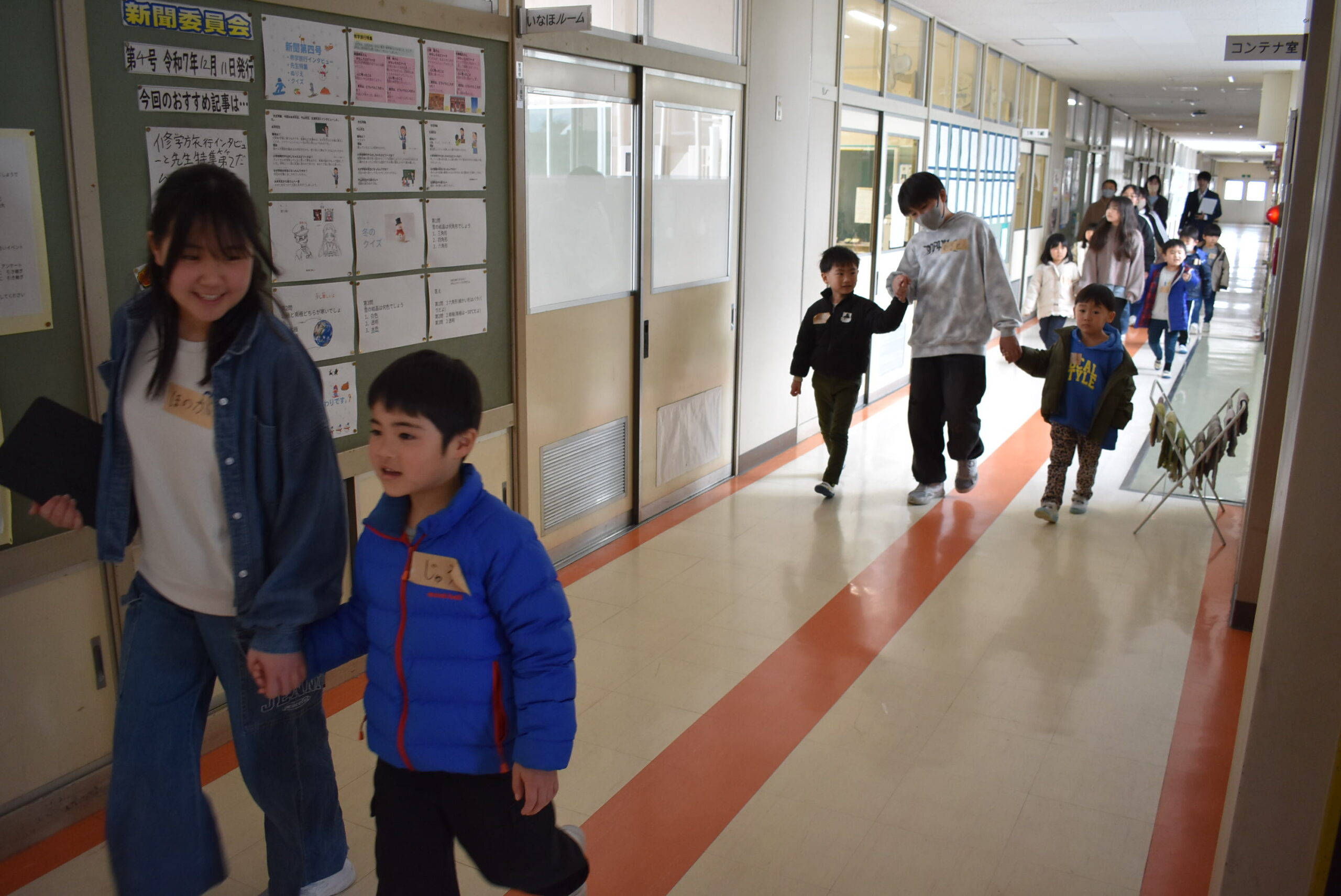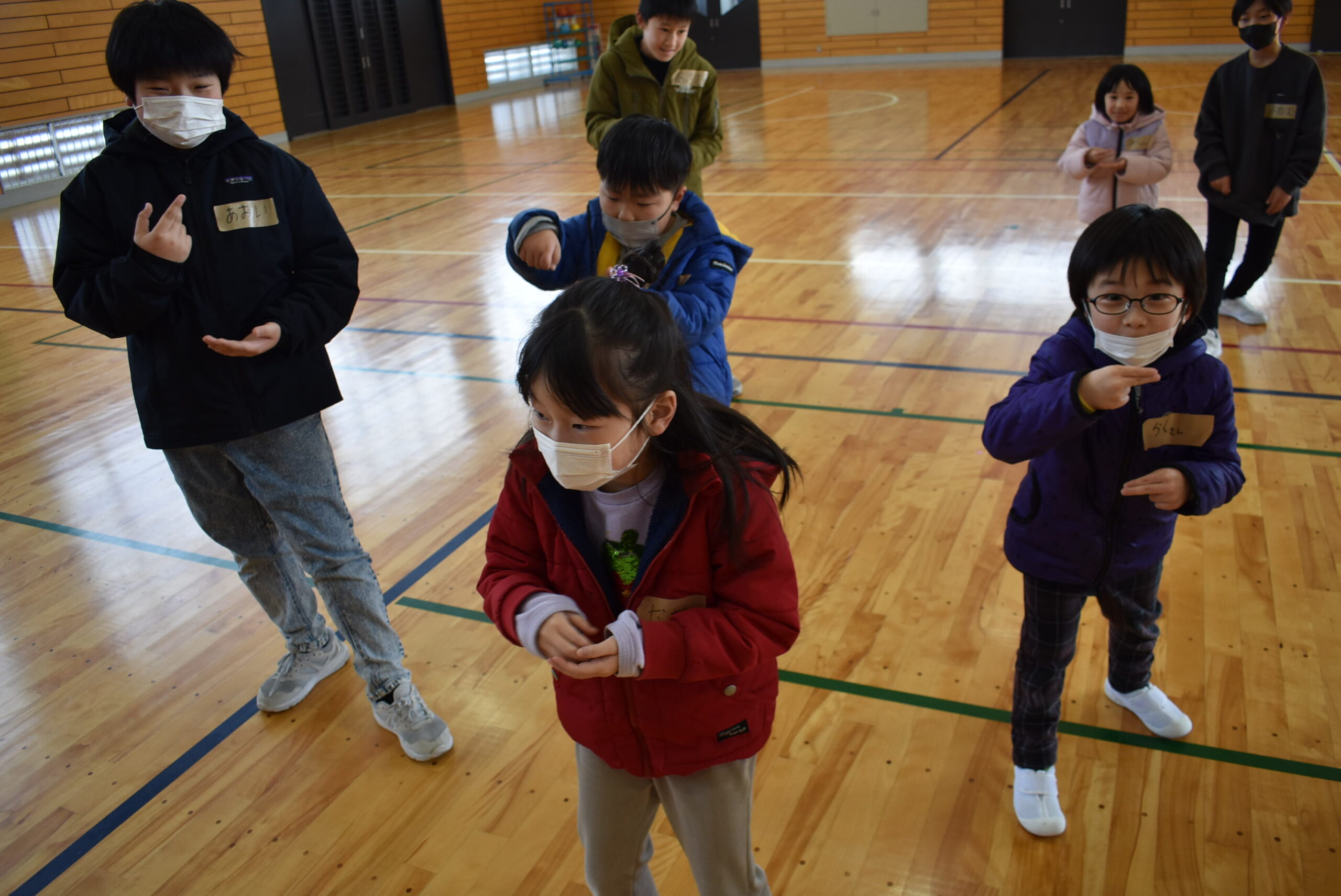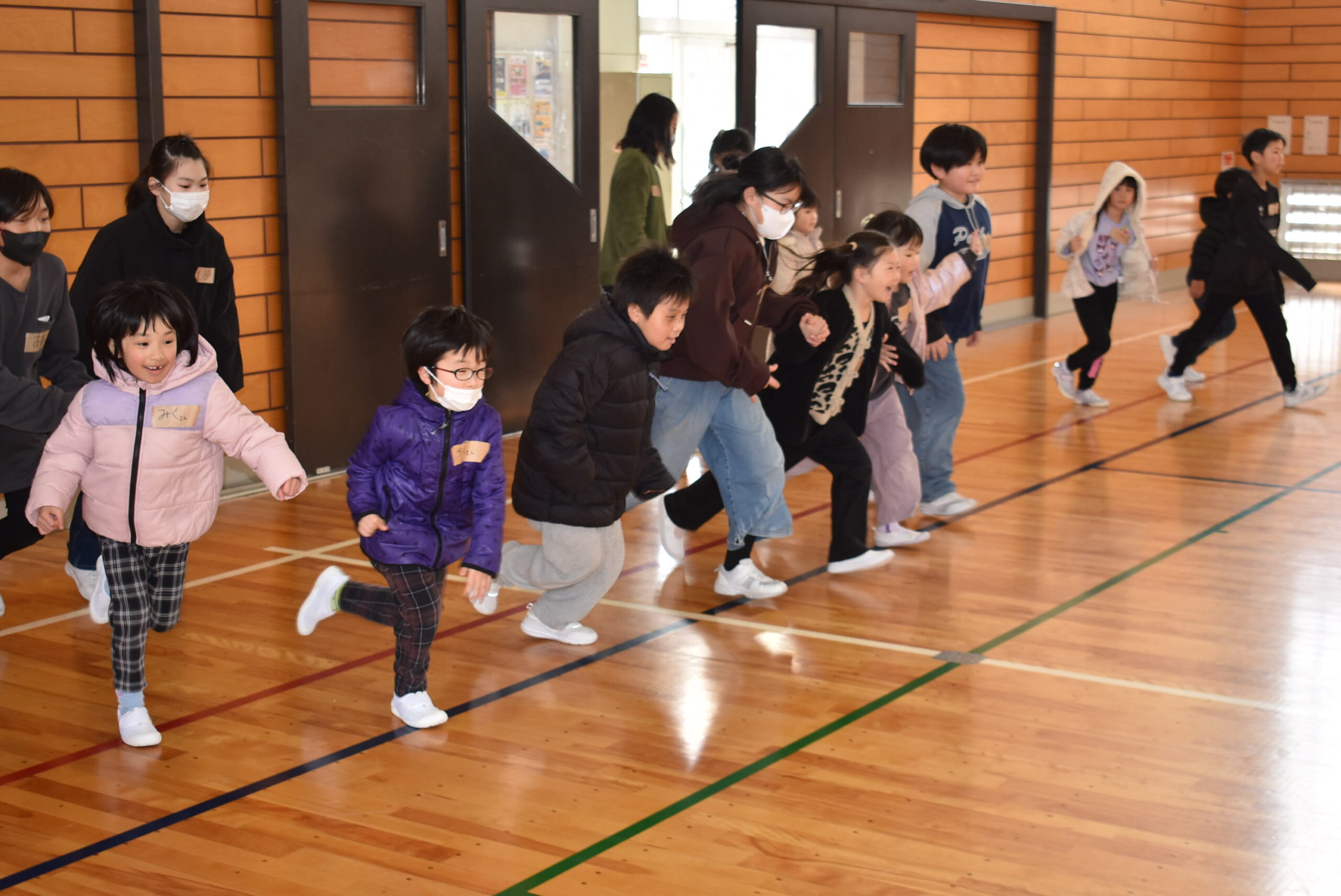 その間、新入生たちは5年生といっしょに遊びました。