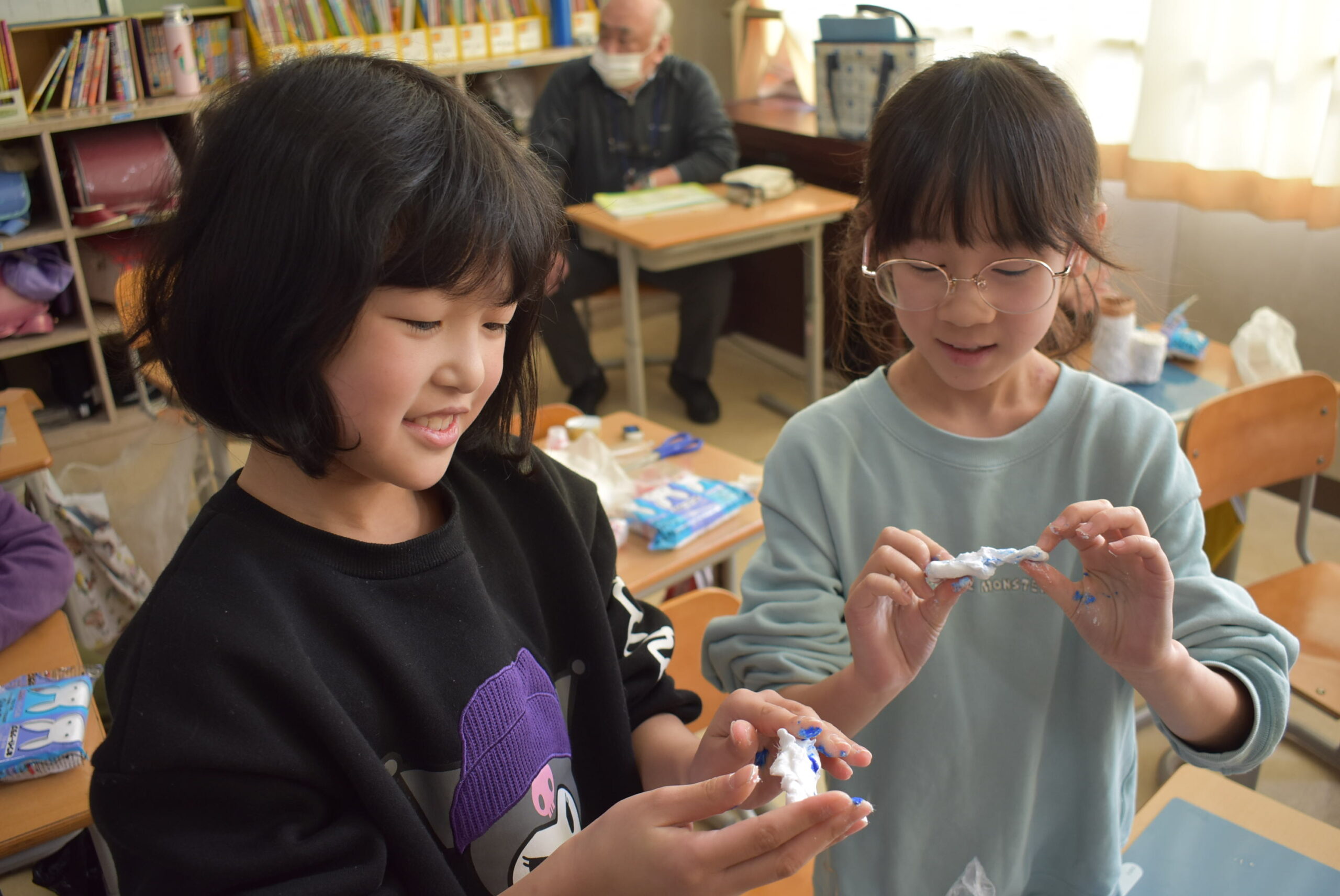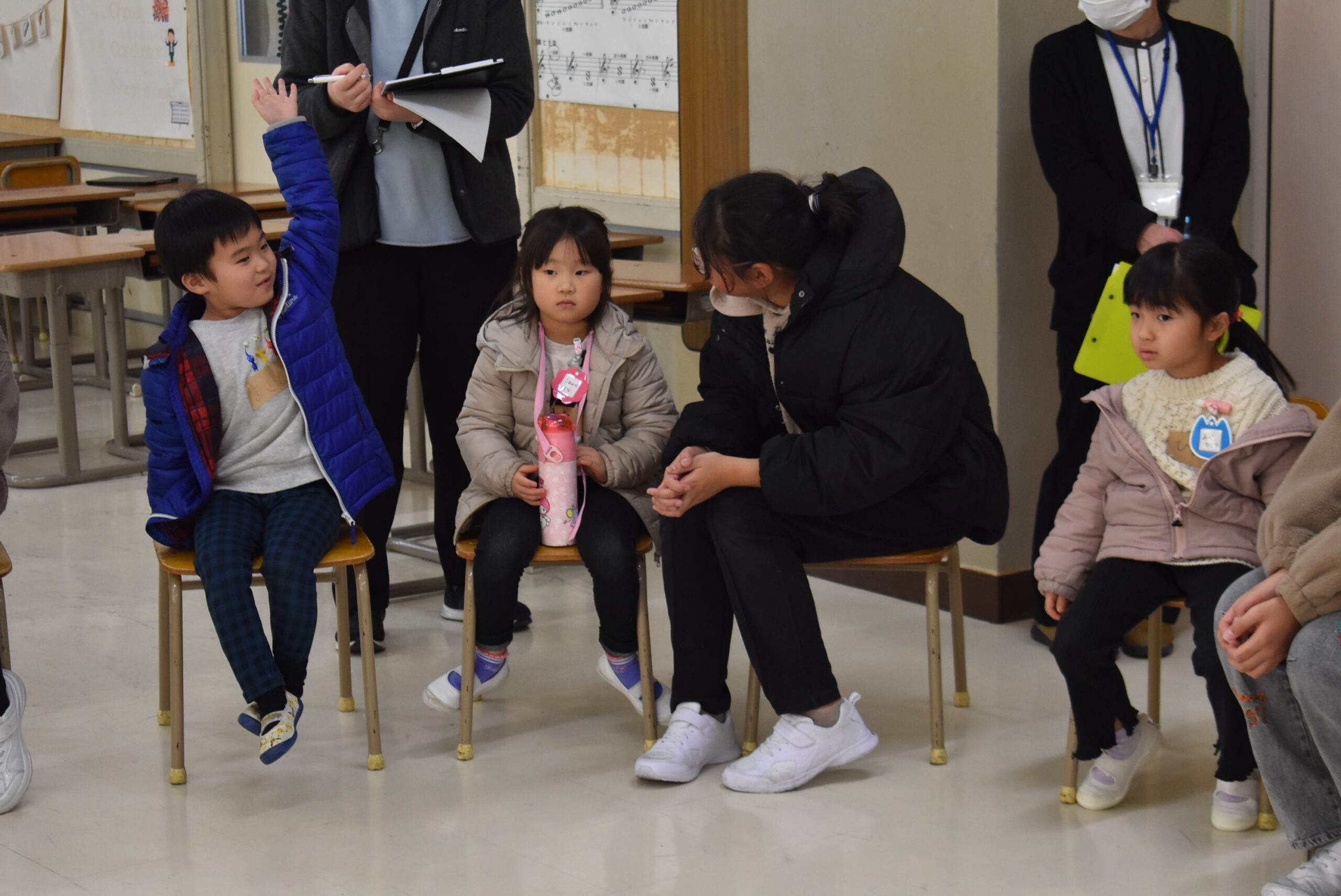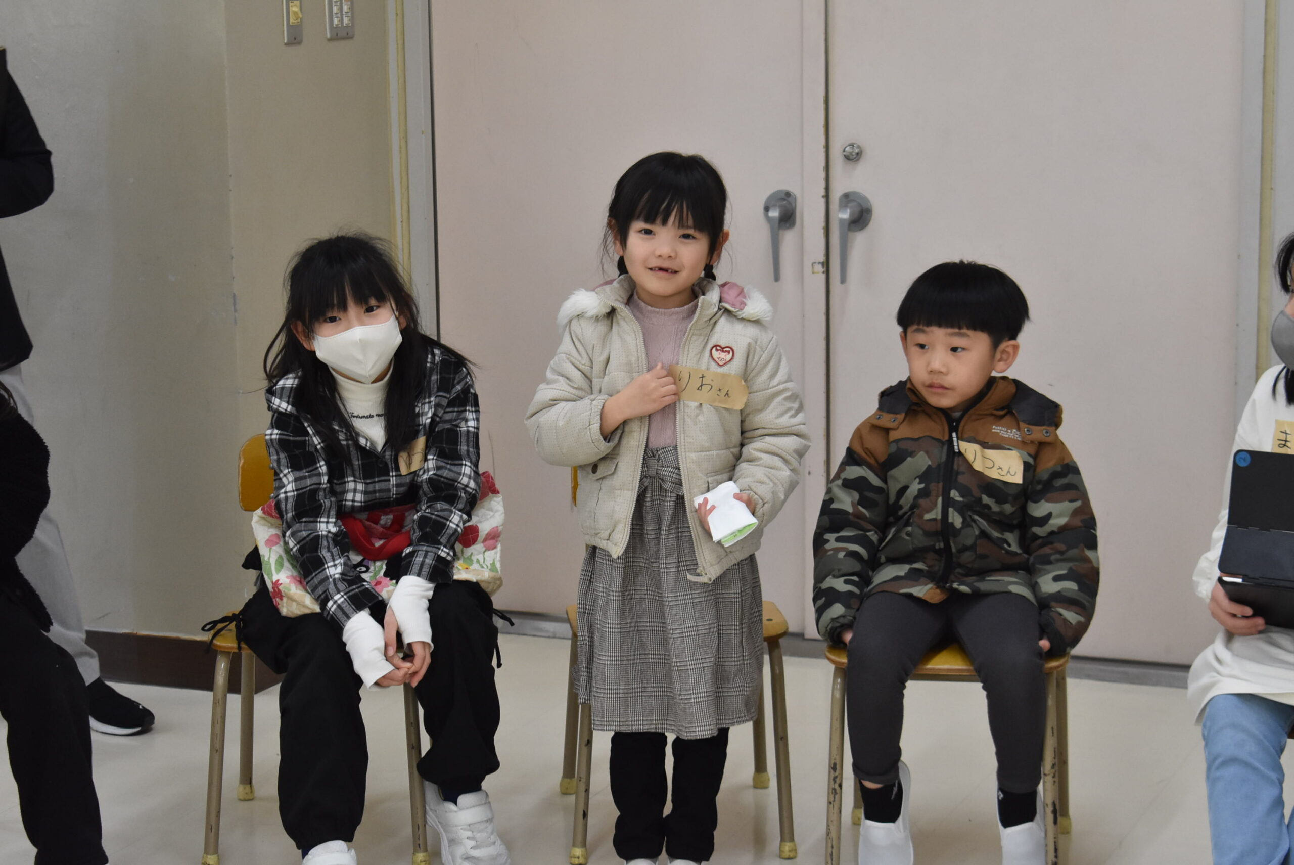 その間、新入生たちは5年生といっしょに遊びました。